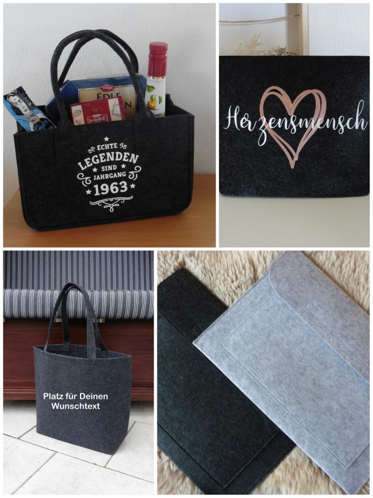 Handmade Handmade Accessoires Filzshopper, Laptoptaschen aus recyceltem Filz individuell nach Ihren Wünschen personalisiertGeschenk zu verschiedenen Anlässen WärmekissenFüllung: Kirschkerne, Traubenkerne